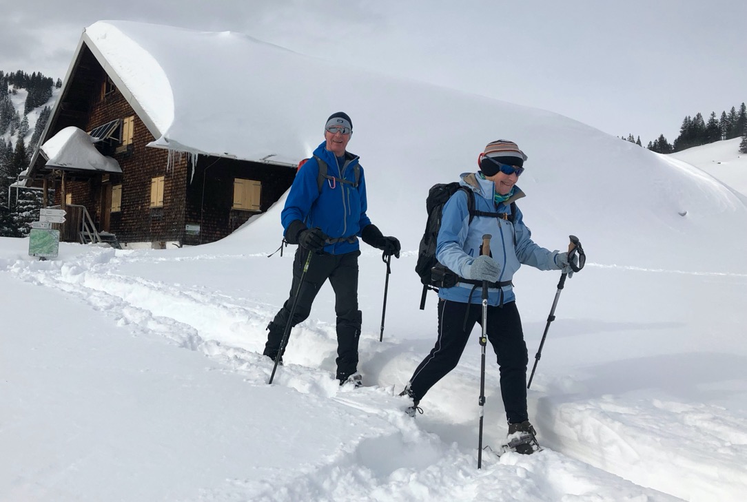 Snowshoeing anyone? For over ten years we have been lucky enough to guide George and Margaret on snowshoe trips across Europe. They have become our pioneers in terms of exploring new routes and areas. Now of mature years they are wonderful ambassadors for snowshoeing and as an example of how to continue to enjoy the mountains no matter what your age. They first joined us in 2009 when they were cross country skiers. However, the skis were soon abandoned and they were converted! The following is George's version of events.