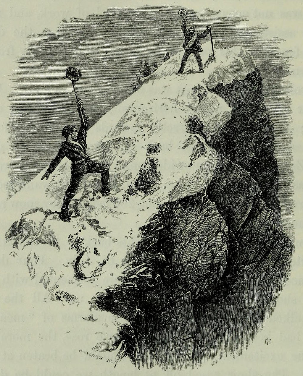 An illustration by Edward Whymper depicting his successful summit bid