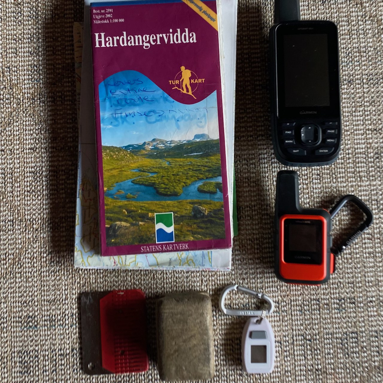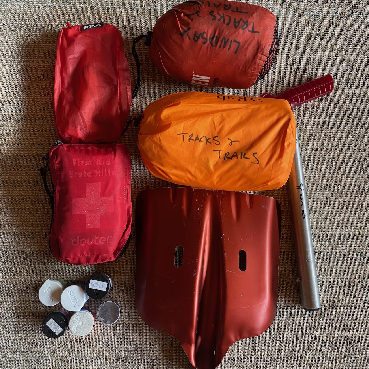 Guide items - your guide is also carrying maps, GPS, emergency comms, cork, scraper and thermometer for ski wax