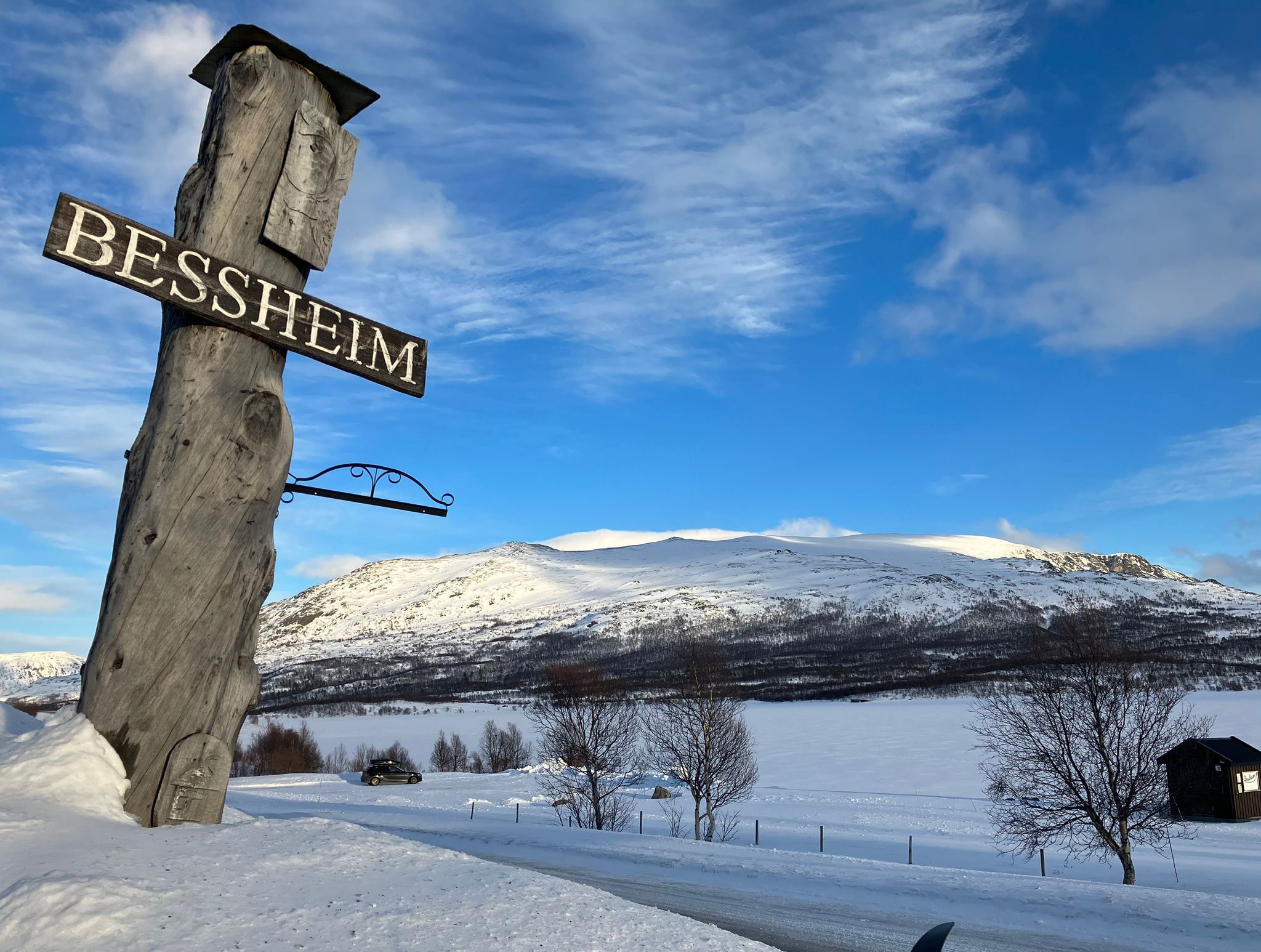 We only spend one night at Sjodalen, before heading off on Thursday morning on the final leg of our journey and an outstanding day in the valleys and foothills of the wilder mountain ranges, we’re definitely now in the ‘Land of the Giants’. We start on narrow birch forest trails, we then contour around a lake surrounded by high mountains and, after a lovely section in the foothills of the mountains, we finish with what for me is the highlight of the day – 5km (3 miles) across the lake to Bessheim on a track which rapidly fills in with spindrift as light snow begins to fall. An exhilarating experience as we take it in turns to break trail and learn that, while it’s hard work, being in front gives you the best views!