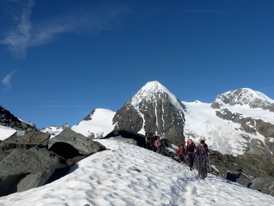 This morning we leave the Cabane and head down into the valley to what seems like a cross roads of glaciers where we will cross the river to gradually ascend beside the Glacier de Fenêtre to the Fenêtre du Durand at 2797m (9174ft). The description 'Fenêtre' is often used in French speaking areas to describe a high narrow pass, in other words a 'window' to the next valley. At our Fenêtre we will now be on the border of Switzerland and Italy. We can stop and enjoy the views back to the Cabane de Chanrion with the snowy peaks of Mont Blanc de Cheilon behind. We then cross the border into Italy and descend to lush summer grazing grounds where we have plenty of opportunity to see marmots at work and play. Following an ancient irrigation channel, known as a ‘bisse’, we contour around the valley and end the day with a steady climb up to the Cabane de Champillon, which was re-built in 2004. The Cabane which sits at 2375m (7790ft) is also known as the Refuge de Letey.