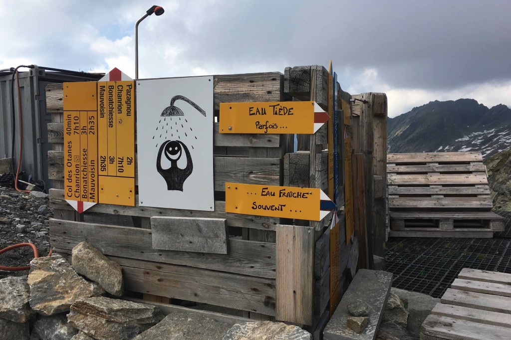 This Cabane was entirely re-built during 2014, and now offers nearly sixty places in seven dormitories. It is perched high on a Col and offers incredible evening views and sunsets when the weather is right. It has showers available. The guardians are Odile and Pierre-Elie, and as with many high mountain refuges it is a family concern.