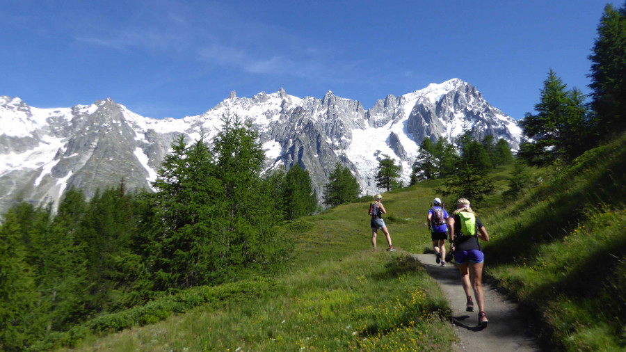 Our trail running holidays include running from Chamonix to Courmayeur and beyond but for this one we run from Courmayeur to Chamonix!
