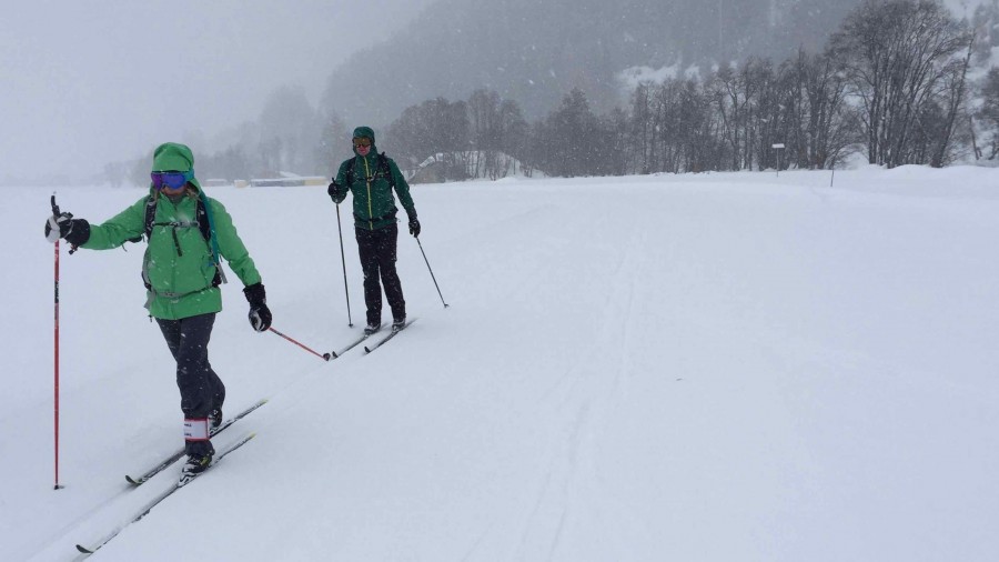The cross country skiing equipment we will use features lightweight track fishscale classic skis (not skate skis or waxables), NNN (or similar) boots, bindings and poles. The total ski hire for the 5 days is 118CHF per person for winter 2023. We ask that you pay this sum directly to the ski shop by cash or credit card.