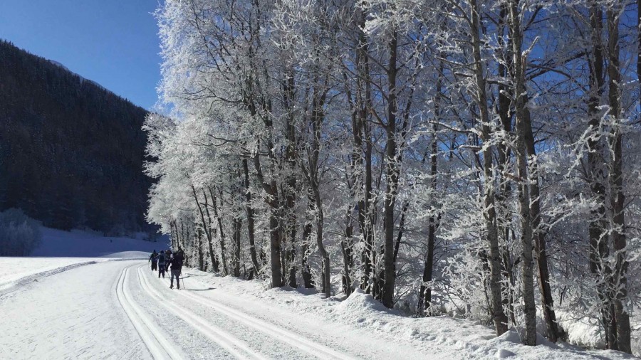With the local train at your disposal, we can easily access new trails each day, ensuring variety and the chance to discover different corners of this Swiss winter paradise. Whether refining your technique or simply enjoying the beauty of the Alps, the Obergoms offers an unforgettable cross-country skiing experience.