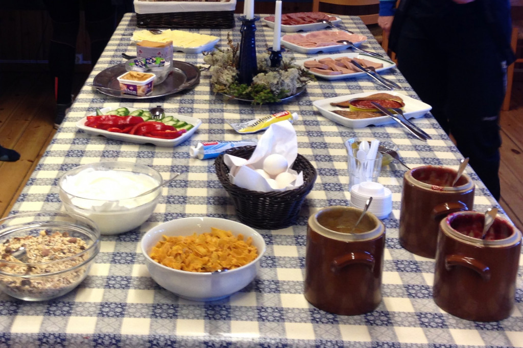 The self-service cabins are equipped with all that we need for cooking and sleeping. Firewood, gas, kitchen utensils, table linen and bunks with blanks or duvets and pillows. We do require you to bring a 'sheet sleeping bag liner' for reasons of hygiene. The cabins are also stocked with tinned and dried food which means we do not have to carry provisions! It is not possible to 'reserve' beds in self-service cabins and it is a case of 'first come, first served'. We aim to arrive in good time to secure the necessary number of beds which are usually in rooms with between 2 - 8 bunk beds. If we arrive late in the day and the cabin is already crowded then as 'members of the DNT' you will have priority over non-members in terms of acquiring a mattress. Please note this may be a mattress on the floor, think of it as camping, but with a roof!