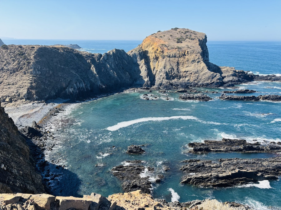 It's then onto Arrifana village which really exemplifies the wild west Algarve and with it a surfers paradise. After a quick coffee we start another section of the fishermen's trail. We first come to fishermen's huts and the remains of a Fort Arrifana - which was originally constructed in 1635 with the intention of protecting fishing grounds for tuna as well as defending the coast. Our path then heads onto the coast and winds up and down the dunes and connecting rivers where if we are lucky we can spot nesting stalks along the way. Our trail passes through the Ribat of Arrifana, an Islamic fortress-convent, occupied by warrior monks in the 12thcentury. This is the only known Ribat in Portugal, founded by Ibn Qasî, a political leader and spiritual guide of Islam’s. It was a fortress convent, dedicated to prayer and watching over the coast and there's no wonder why it's location was chosen.