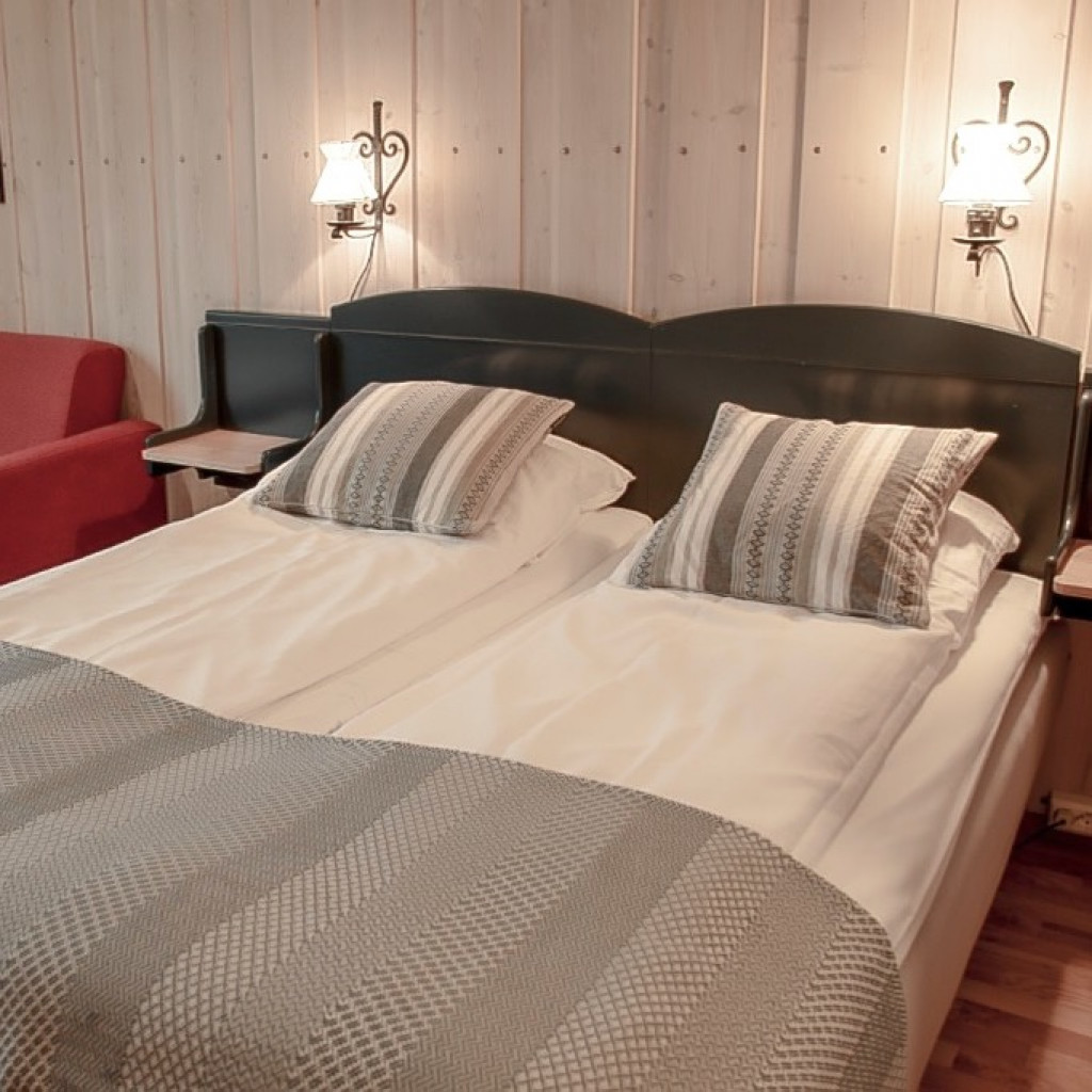 The rooms in the hotel were built in 1992 and renovated in 2020. There are four single rooms and 22 double rooms in the main building. The rooms have a private bathroom with shower and toilet, and free wifi. There is said to have been a settlement at two of the mountain lodges at Hjerkinn even before King Eystein who was credited with being the force behind the organised operation of Norwegian mountain lodges.