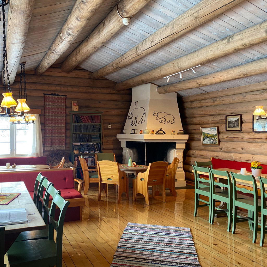 Rondane Haukliseter Fjellstue is very typical of traditional Norwegian mountain hotels. It is cosy, welcoming and perched on the hillside with great views to the mountains. The rooms are all en suite, and there are characterful living rooms with local painted wooden furniture. The meals are created with local produce and are plentiful. There are a total of 22 bedrooms and various lounge areas to relax. There is also a wooden sauna in the ground with a glass-front offering fabulous views while you steam! Wi-Fi is limited at the hotel—perfect for unplugging and fully immersing yourself in the peace and beauty of the surrounding mountains. The hotel is run by Tore whose family have been offering hospitality for several generations.