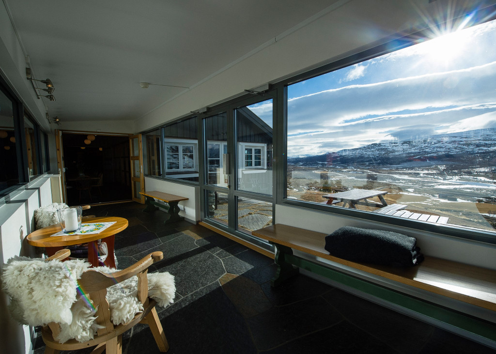 Bjørnhollia DNT lodge is one of our favourites with a stunning lounge area with central fireplace overlooking the valley. Bjørnhollia lies in the south of the Rondane range, with its sheltered valleys and wonderful scenery. The lodge is a true gem and in 1984 it was awarded the Muncipality of Sel Architecture Prize for the best trekker facility in the mountains. Enjoy chilling out in the lounge, and indulging in the excellent food.