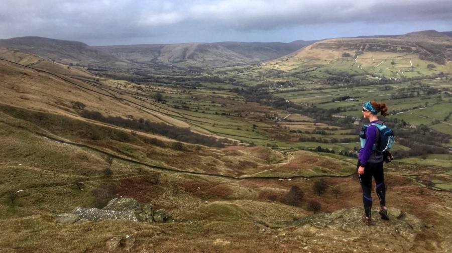 We then head to the trails for our second run. Leaving Castleton we join the start of the Limestone Way, the path quickly rises behind Peveril Castle, through Cave Dale to open moorland to reach Mam Tor the Shivering Mountain! Mam Tor, meaning ‘Mother Hill’, sits at 517m (1696ft) high and is not only one of the most famous high spots in the Peak District but makes a very achievable running peak. Here the views are magnificent, particularly along The Great Ridge and Rushup Edge - on a clear day you can even see Manchester! Mam Tor sits on the edge of the Dark Peak (gritstone) and the White Peak (limestone) which means you get some fantastic views of the limestone parts of the National Park, such as the dry gorge of Winnats Pass.