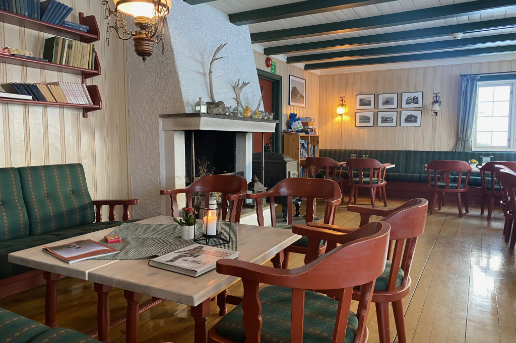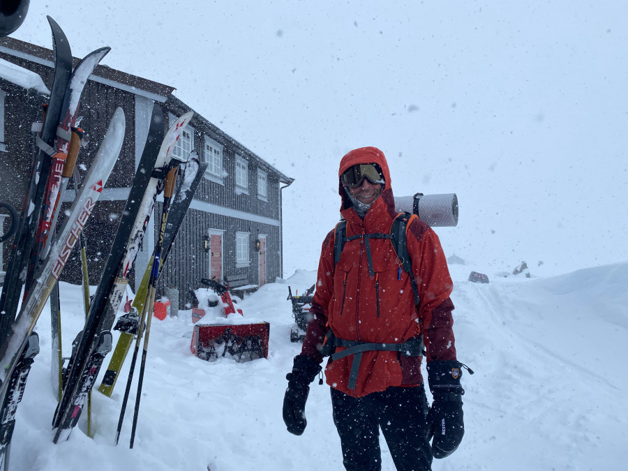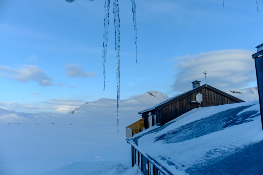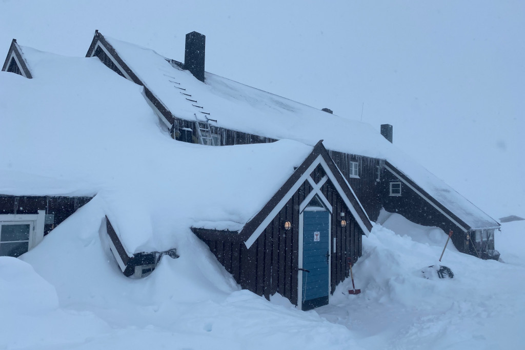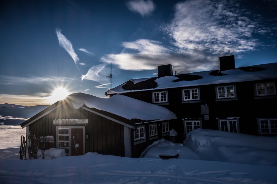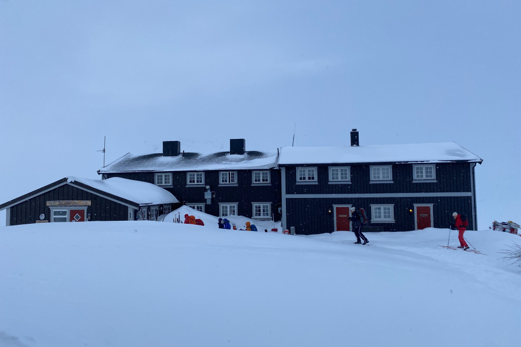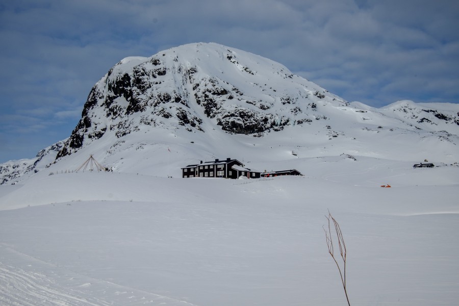 The DNT hut at Finse was fully renovated in 2021 and is clean, cosy, and comfortable. With the railway station just 500m (1640ft) from the hut door it is easily reached on foot or by ski. It is a serviced DNT hut, looking after skiers from all over the world. It provides 174 beds, in rooms and dormitories. There are indoor toilets, showers, and a drying room for kit. The hut serves dinner and breakfast, and snacks at other times. There is a phone signal and wifi, and a small shop with a selection of outdoor items The hut is famous as a training base for polar explorers from around the world. It is not unusual to see a sponsored group ski past with 'Shackleton' emblazoned on their pulks (sledges).