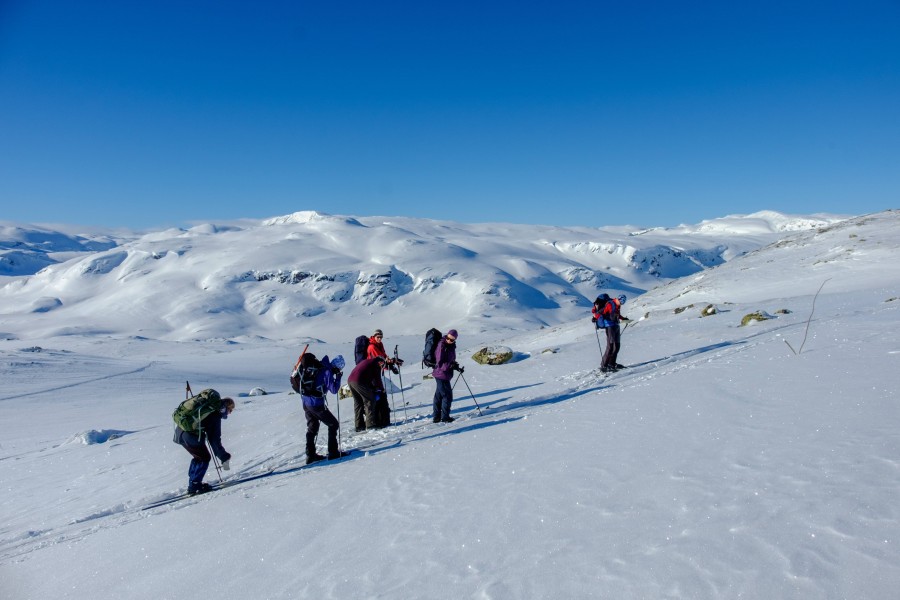 The Hardangervidda is Northern Europe's largest mountain plateau and Norway's largest national park. In winter there is a network of trails which connect the mountain lodges. Our overnight accommodation is a 'self-service' hut where you will join in the wood-chopping, water collection, and cooking. This is the true Norwegian hut experience! Skiing through the wilderness to reach a cosy wooden hut with the prospect of a wood-burning stove and a large pot of tea at the end of it. It's all great for building team spirit! Once we are settled in there will be time for the more energetic to tick off a nearby highpoint such as Kongshellernuten.