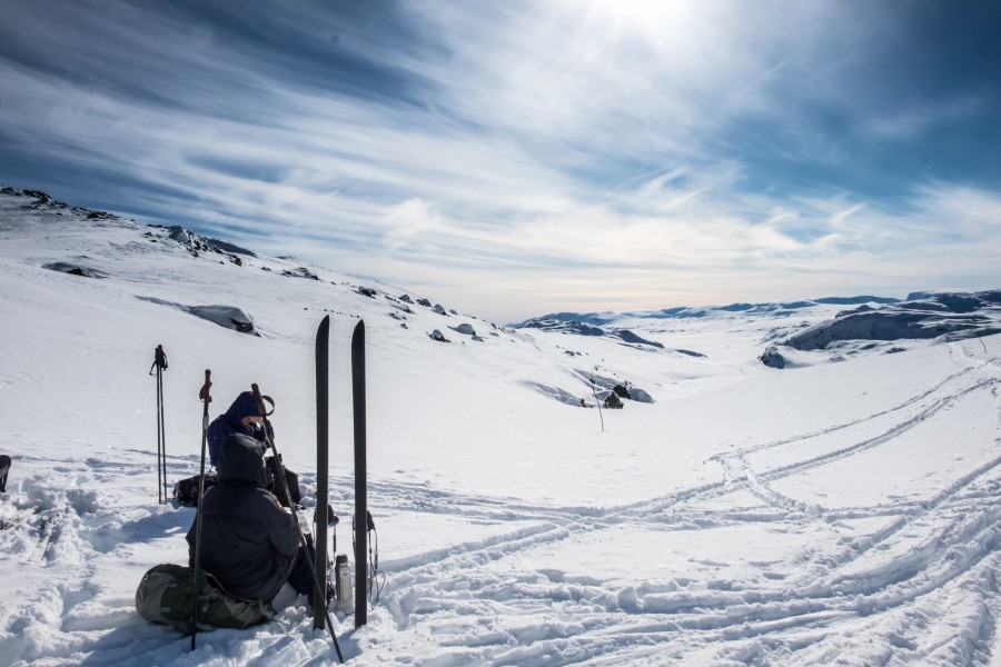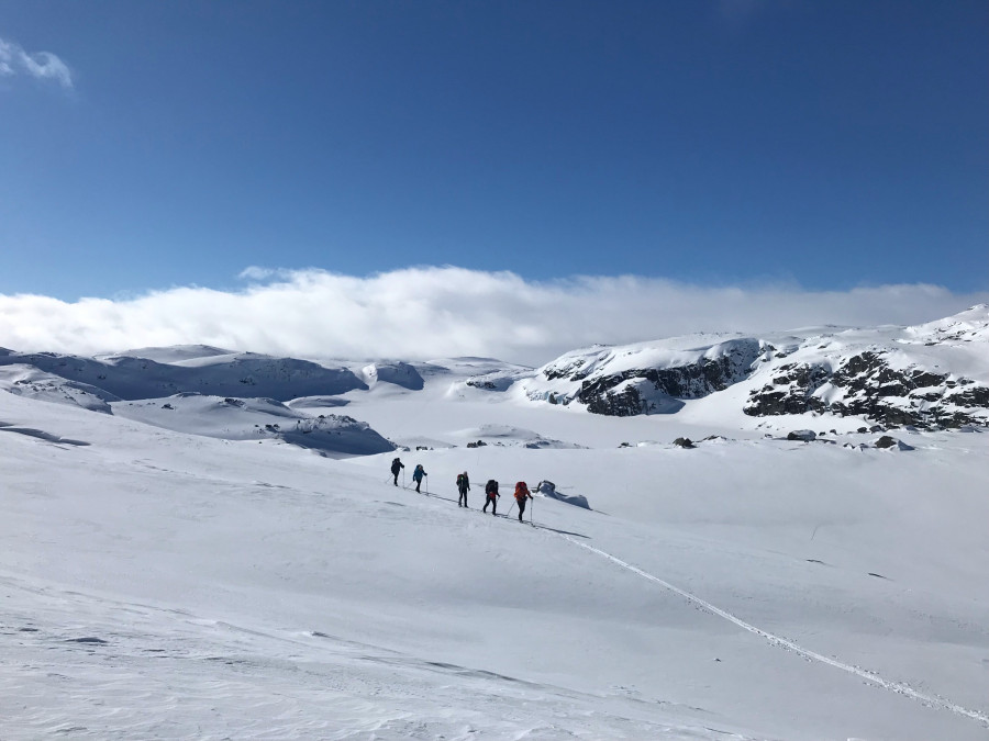 After a hearty Norwegian breakfast, we prepare our skis for our tour and contemplate new horizons. Today we leave the Finse hut and head for the hills to travel to Geiterygghytta, our next overnight. The 'hytta', Norwegian for 'hut', is one of the gateways to the magnificent Aurlandsdalen. The well-known and historic Aurlandsdalen Valley was once the main route between the eastern and western parts of Norway. This area is known as Norway's Grand Canyon, a landscape that is often described as wild and breathtaking, rich in plant and animal life, cultural treasures, history and geological features. The geological history of the area goes all the way back to rocks that are older than 1500 million years, however, it was only in 1981 that the landscape was taken into the protection of the National Parks.