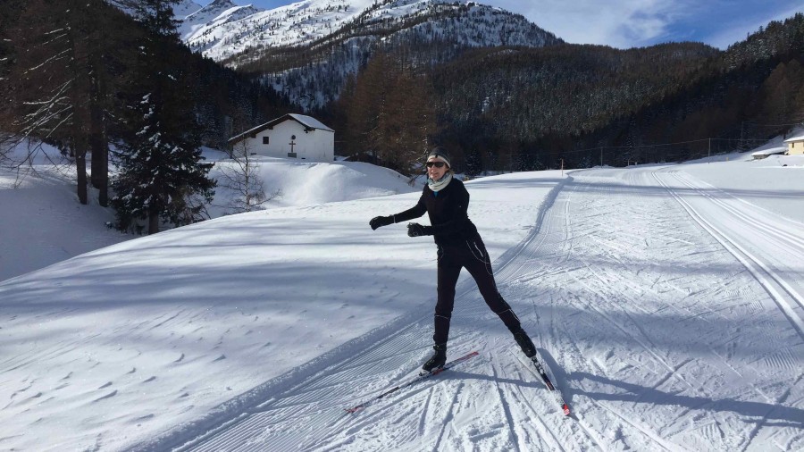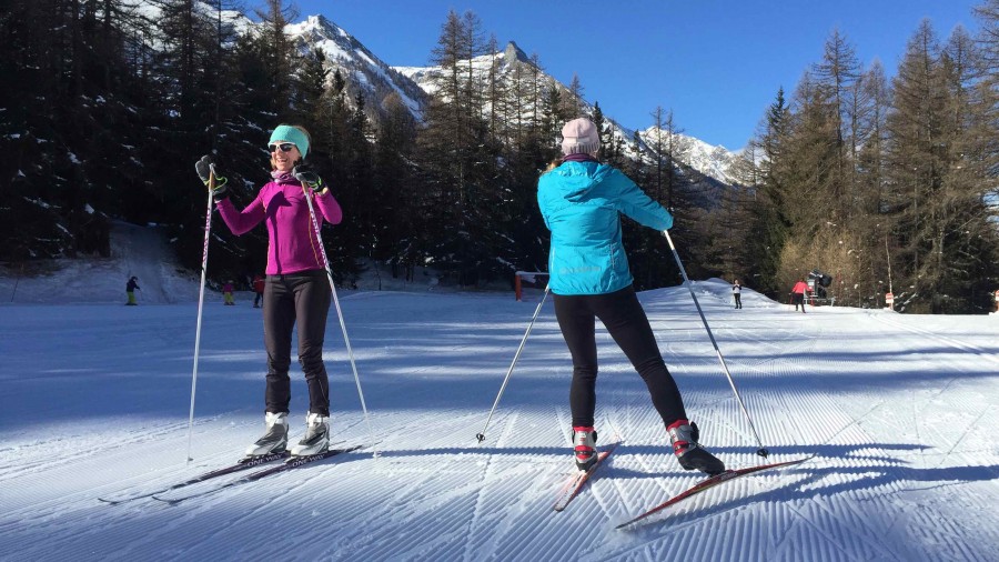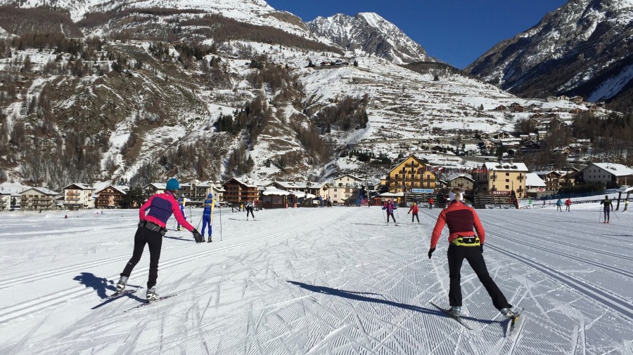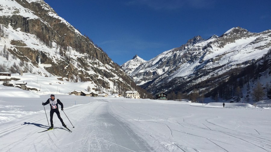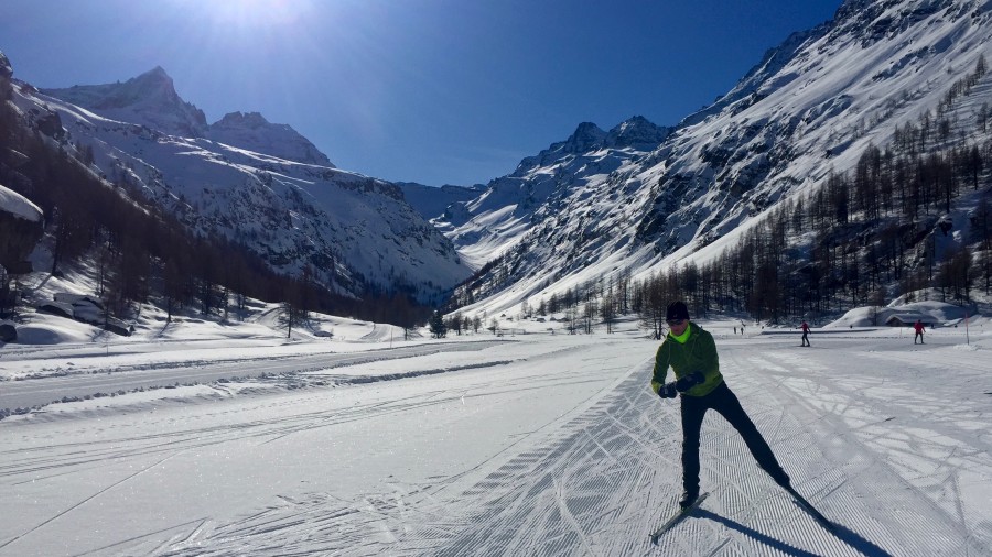 After breakfast we will head off to explore the valley tracks. The free ski bus means we can explore slightly further afield by starting in one of the neighbouring villages such as Epinel or Lillaz. After we warm back up, we can review and practice our new found skills from yesterday. Always keeping the enjoyment factor high and the fear factor low, it is our instructors aim to ensure that you progress each day at 'your' level. It is worth mentioning that learning to skate also helps with other sports, making it an excellent form of 'cross-training'. It will enhance your balance, co-ordination, aerobic and muscular strength and tone, all while enjoying gliding along looking at beautiful views. And with 55km's (35 miles) of ski trails many regional and national cross country ski competitions like the Marcia Gran Paradiso take place in the Cogne valley.