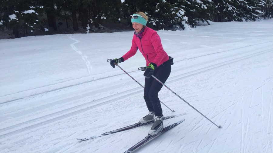 We use 'skate’ style cross country track skis for this trip .