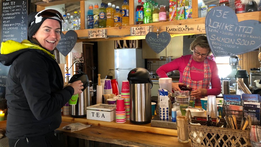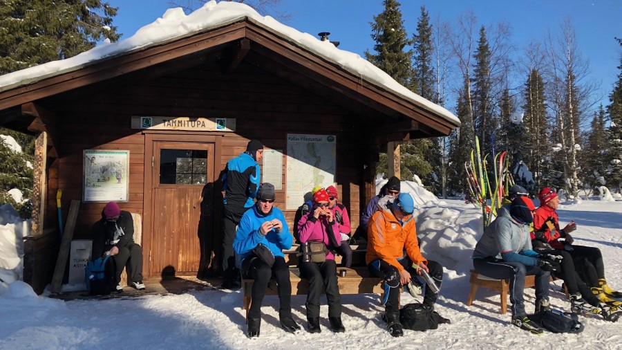 We do not include lunches in the trip fee as we find that our guests prefer to choose their own lunch. In Finland there are many cafes beside the ski trails as well as 'kota' which are traditional wigwam style structures where there will be BBQ already fired up! All the trail side cafes take a credit card, but having some local currencies is advised. Many people stop to cook sausages and other items on the fire. Otherwise you can stock up at the local supermarket on lunch items. Your guide will advise you of the options each day.