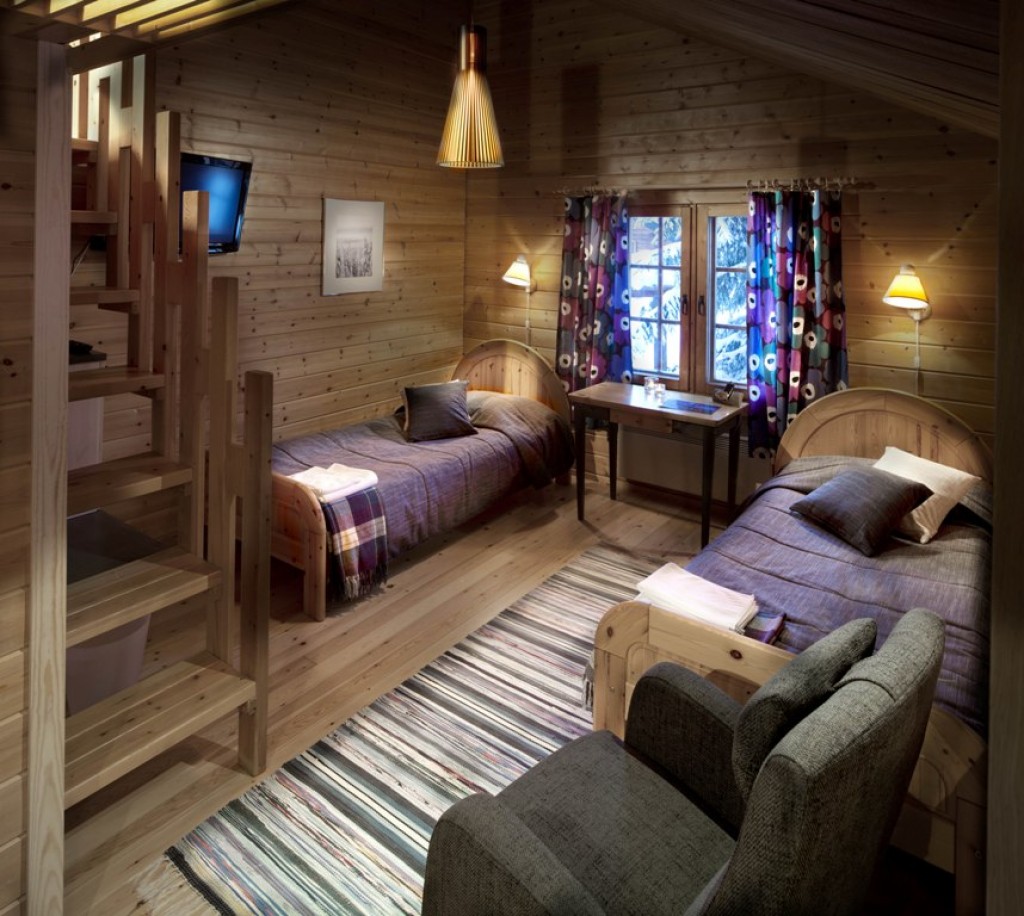 The hotel, in typical Finnish style, is a cluster of log cabins spread around the edge of the lake. All rooms are en suite with shower, and toilet. Single rooms may be available on request for a supplementary payment. However, these are limited in number and we recommend that you book early if you wish to be sure of a single room. Please contact us for details. We are sure you will find it very comfortable, and cosy. To start our ski day we only have to walk about 100 metres to the tracks, perfect! As we choose to use Hotel Ylläshumina we rely on early bookings to secure our rooms. If we find that bookings for this trip arrive very late/last minute then we may with your agreement use alternative accommodation.