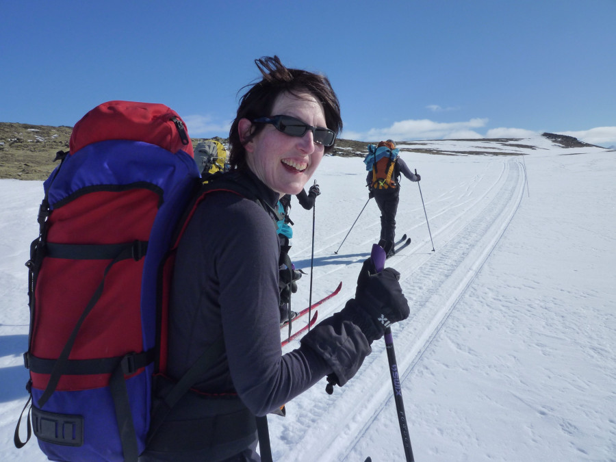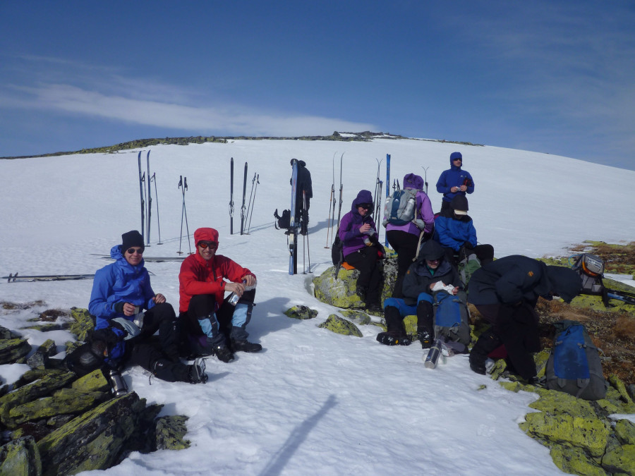 Today we will do a local ski tour from Rondvassbu. This is your chance to ski with a lighter pack, or simply sit out the day by the fire with a good book. The mountain lodge at Rondvassbu is a popular destination for Nordic off-track skiers and there is usually a jolly bunch of ski fanatics available for conversation! There are various options for today including skiing up the lake below the blue icefalls, or heading up the gentle slops of Fremre Illmannhøe which is a favourite destination of those skiing in this area. The summit is rounded and sits at 1602 m (5254ft) and makes a great goal for our day tour. If you are keen you can do some laps of the slope, or head back to the fireplace and watch the antics of other skiers from the comfort of your armchair. There can be great 'people watching' at Rondvassbu as teams arrive towing pulks or being pulled by their dogs through the snow. The time spent on skis today will be dependent on the route chosen, but the aim is to allow you time to enjoy a more relaxed ski tour.