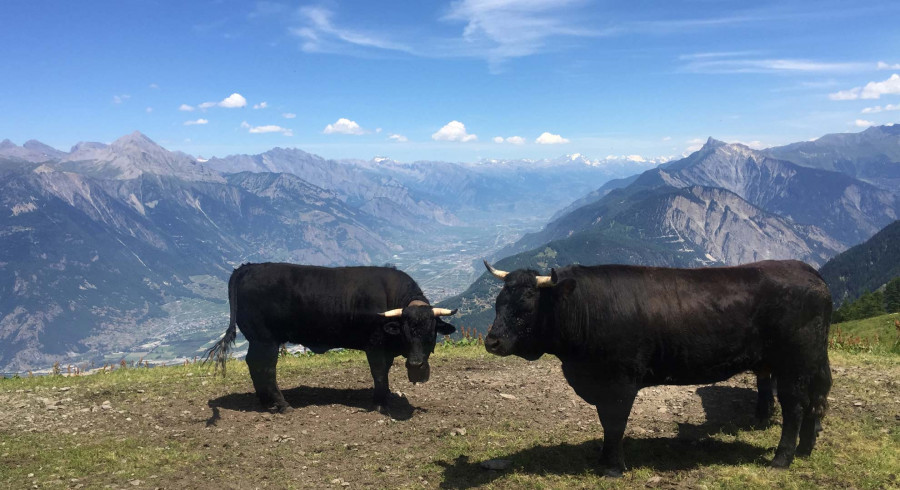 We begin the day with a leisurely stroll along the mountainside with fantastic views of the Rhône Valley, while above us towers the Cime de l'Est known as the little Matterhorn. Usually a good opportunity for photos of its jagged profile which does indeed echo the shape of its namesake. We then climb through meadows and ancient forests to the summer pastures at Chindonne. Our auberge enjoys wonderful views across the valley to the mountains opposite. Ascent 700m.