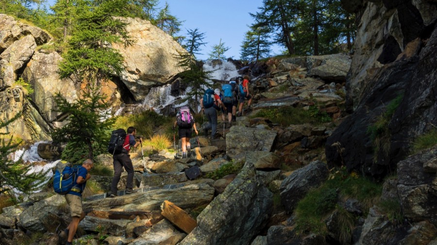Leaving behind the lovely Rifugio Pastore we follow a trail through the woods to reach Aqua Bianca by the waterfalls, this is the 'stop' for the shuttle bus which we will take down to the lovely town of Alagna. From here we climb through the forests to the truly idyllic hamlets and farming settlements of the Otro valley. A further ascent into a wild valley takes us to the first pass Passo Foric (2432m) and then onwards to our high point of the day at the Col d'Olen (2881m). In 1636 Col d’Olen was the site of a major battle between Spanish and Piedmontese forces, won by the latter despite their heavy losses. The Col then became important during the 19th century as the starting point for mountaineering expeditions up Monte Rosa. After passing the Col we head down to our rifugio at the Gabiet lake which sits at 2375m (7790ft).