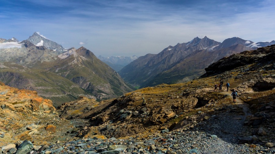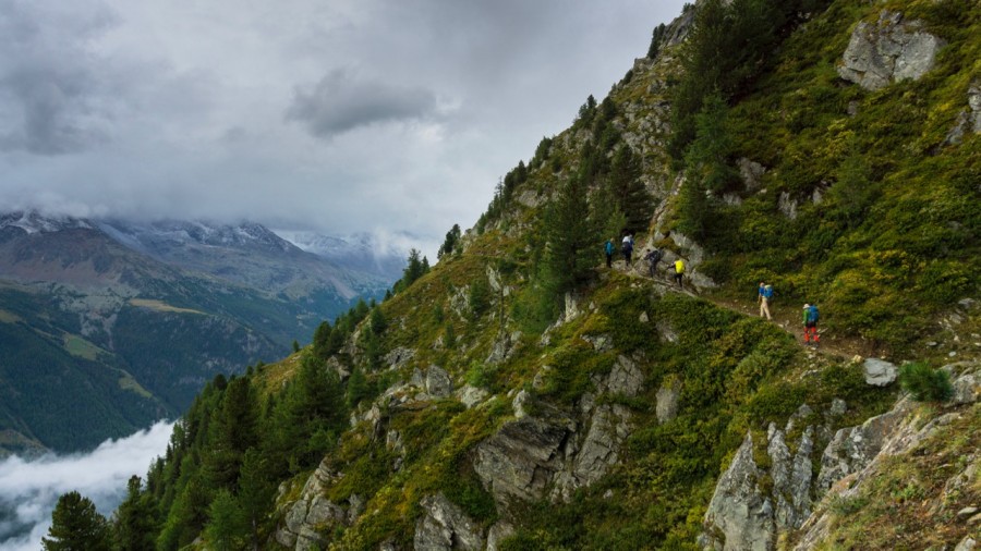 This route circles the Monte Rosa Massif, following ancient trails through pine forests, alpine meadows, and hidden valleys, keeping you close to cliffs, glaciers, and jaw-dropping mountain scenery. Along the way, experience the buzz of the world-famous alpine town of Zermatt.