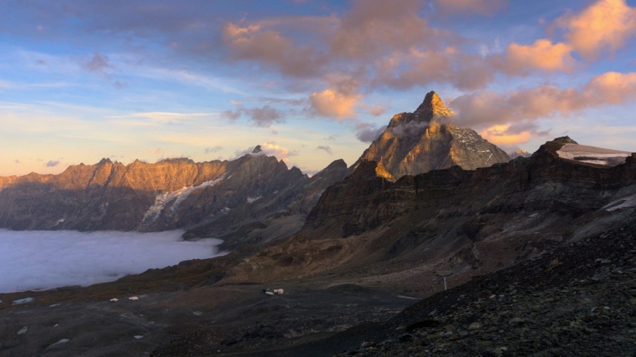 This is the highest point on the trip and it is quite a spot to spend the night. The famous Rifugio Teodulo is perched at 3316m (10,876ft) amidst glaciers, snowy peaks, and the best of all it is right next to the mighty Matterhorn offering absolutely stunning views of this iconic mountain. The rifugio which has recently been renovated is a fine place to spend the evening.