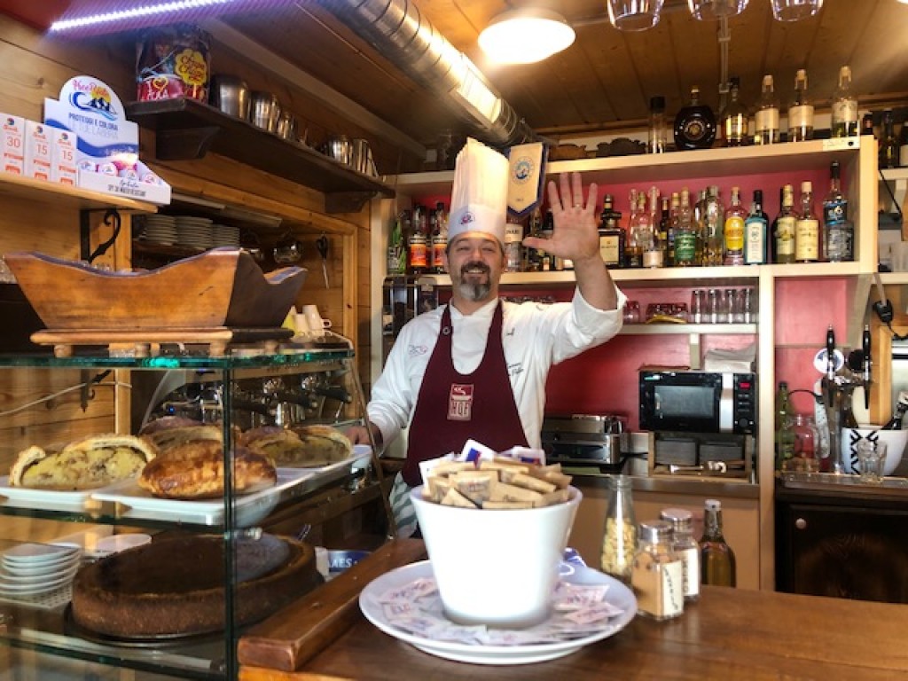 Our destination tonight is the Rifugio Ferraro in the tiny hamlet of Resy which sits at 2000m (6560ft), and is one of the old Walser villages which flank the Val d’Ayas. The guardians of this refugio are Fausta and Stelio and they are determined that you will enjoy your stay with them. An evening drink watching the sun go down from Resy is one of the best of mountain experiences.