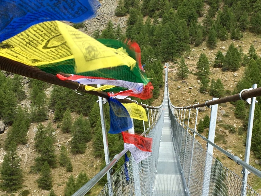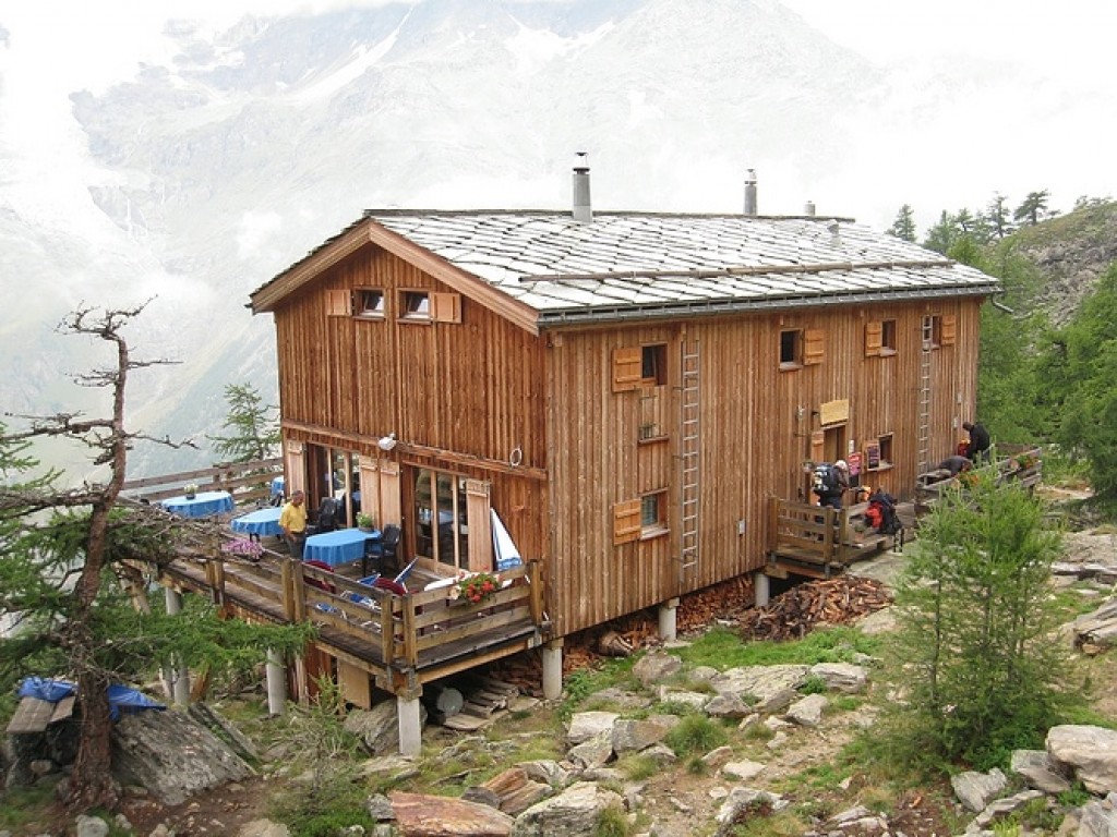 In the morning we retrace our steps to the top of the list station before we traverse on a track until we meet a path above the ancient hamlet of Tufteren. From here we follow the Europaweg trail where we can enjoy some great views of the Matterhorn before we turn our back on the mountain and start our traverse to the Europahutte. By lunchtime we reach the meadows at Taschalp and it is there we continue onto rougher terrain as we head towards the new Charles Kuonen Suspension Bridge which is a staggering 500m long and now famed for being the worlds longest pedestrian suspension bridge. Our trail works its way along under the jagged peaks of the Täschorn and the Dom until we eventually reach the stunningly situated Europahutte at 2220m (7281ft) where the guardian Marcel will be waiting to prepare your dinner. The hut is relatively new and is situated in a really prime position for views of the Weisshorn. A sunset with a beer and the alpenglow setting on the peaks opposite is to be savoured.
