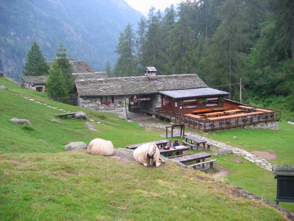 At the end of our trail, and just past the botanic garden, you will find the Rifugio Pastore. Set in a high valley with meadows nearby the Pastore is in a lovely situation. The Rifugio Pastore is one of several renovated mountain huts in the heart of the Alta Valsesia Natural Park. It sits below the spectacular south wall of Monte Rosa.