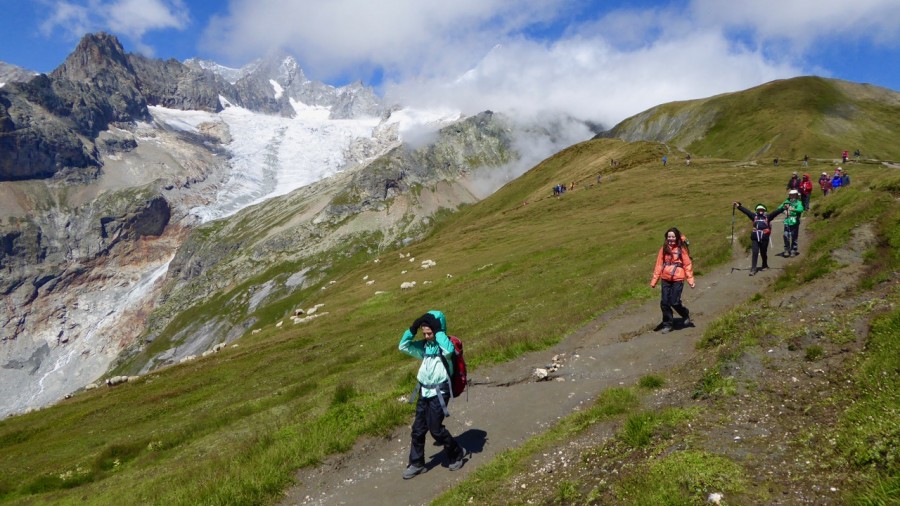 Tonight enjoy stunning views of the 1000 year old Pre de Bard glacier and Mont Dolent, the only mountain that borders Italy, Switzerland and France. Showers are available and the food is excellent! Please note there is no luggage transfer to your accommodation today. You will be carrying just a few extra items in your rucksack for your overnight.