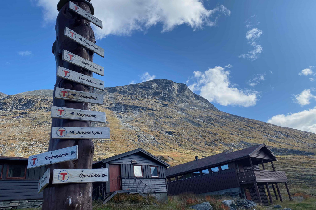 Glitterheim hut is to be found in a wild remote valley, sitting at 1400m (4582ft) below the second highest mountain in Norway, Glittertind. Nearby peaks such as Glittertinden, Nautgardstinden, Memurutinden and Trollsteineggje are on the doorstep and are a challenge for those who collect 2000 metre (6560ft) peaks. The hut has space for 137 people, in 2-bed rooms, 4-bed rooms, and also in larger dormitories. There are showers, toilets, and a drying room for wet kit. The lodge serves local cuisine, based on local ingredients and traditions or on foods supplied by local vendors. DNT works with the Ministry of Agriculture and Food to promote local cuisines and traditions at the staffed lodges.