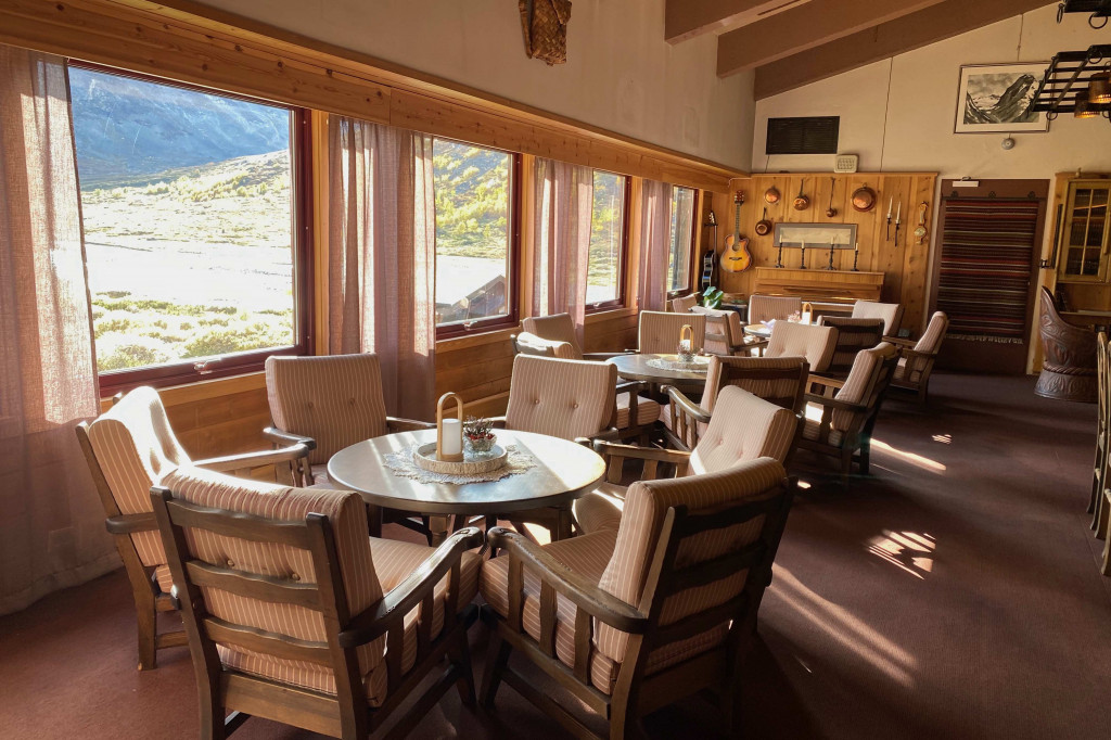 Leirvassbu is one of the most famous lodges in Norway, it was one of the first to open and today is the latest and largest to be acquired and managed by the DNT (Norwegian Trekking Association). We love staying here with the spacious living space, fireplace, bar and restaurant it's a cosy mountain lodge in the middle of nowhere! It has been hosting mountain people since 1875 and today offers an exceptional dining experience for a mountain hut. The hut has 224 beds and 87 rooms. There is good 4G coverage and guest WiFi in the bar and reception area.