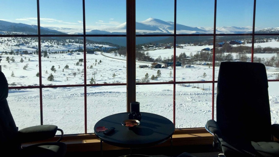 Our hotel at Haukliseter is very typical of Norwegian mountain hotels. It is a cosy and welcoming hotel perched on the hillside with great views to the mountains. The rooms are all en suite, and there are characterful living rooms with local painted wooden furniture. The meals are usually Norwegian buffet style and plentiful.