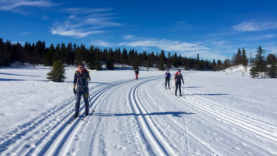 • The finale today as we head for our destination at the Olympic town of Lillehammer. Our day beings with a ski to the east until we reach the lake of Reinsvatnet, enjoying the views of this famous cross country ski area. In winter cross country ski teams from around the world train here for the World Cup. The terrain this morning is gently undulating, and nothing too strenous for our last day. Late morning we arrive at Nordseter cafe and ski shop where we can enjoy a coffee and waffle. At Nordseter we will decide either to take the bus down to Lillehammer, or if the tracks are complete then we aim to ski all the way down to the Olympic stadium at Lillehammer.
