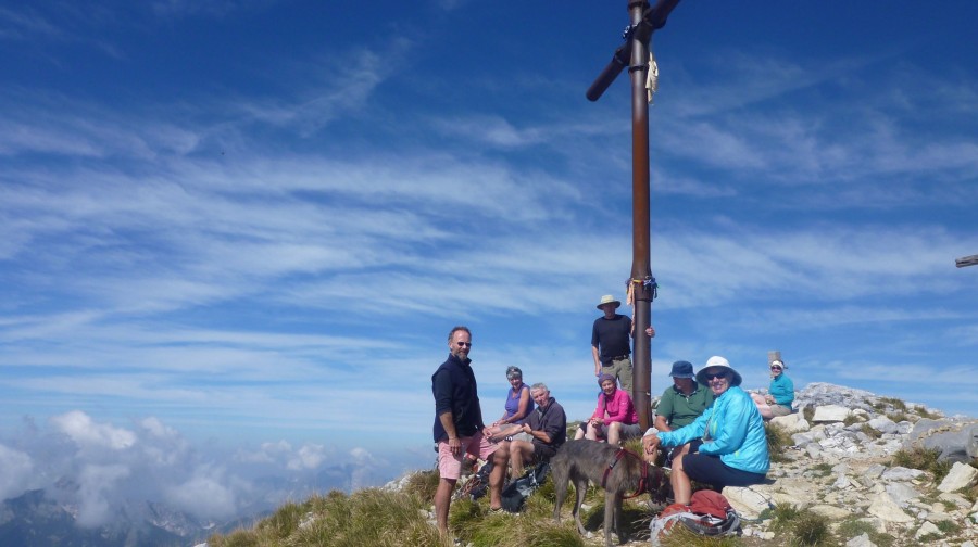 This is a “big mountain" day. Together with its direct neighbour, Pania Secca, the Pania della Croce stands out as one of the most visible mountains in Tuscany. It forms a barrier, separating the northern main summits of the Apuane group from the lower hillcountry in the south. Throughout the week you will have been aware of the 'Pania' rearing skywards high above the farmhouse at Lavacchio. The peak is made even more dramatic by the fact that the mountain is separated from the rest of the range by two valleys meaning that on both sides the elevation difference is more than 1000m. We being with a short drive to Piglionico at 1008m (3307ft) where there is a memorial to WWII partisans who fought a fierce battle on nearby Monte Rovaio. We then traverse round the north side of the Pania delle Croce, to the Refugio del Freo before beginning our main climb of the day on a steady zig zag path. Gaining the ridge we are offered a vista of a rugged, wild landscape, with impressive faces and cliffs as well as glimpses of numerous marble quarries. The Gulf of La Spezia can be seen in the distance and on a clear day Corsica is visible. An easy path takes us along the ridge to the summit 'cross' at 1858m (6096ft) and a well earned picnic lunch. The descent of the rocky Canale d’Inferno often gives sightings of muflon, the wild sheep believed to be the ancestors of all domestic sheep breeds. It's then back to Lavacchio for a well-earned drink on the terrace and a chance to watch your final Tuscan sunset.