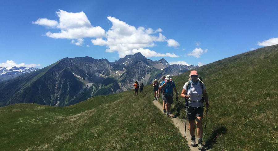 Leaving Courmayeur we return to the Ferret Valley and the tiny community of Arnuva to pick up the Tour du Mont Blanc trail. Enjoying views both back to France and on towards our next destination, Switzerland. Amazing views, stunning flowers, and often local cow herds guarding their cattle as they graze on the slopes amidst the brilliant pink of the Alpenrose bushes. We climb up to the Rifugio Elena for our final Italian coffee, and any refreshments needed before our big climb of the day to the Grand Col Ferret. The is one of the highest cols on the trip at 2537m (8321ft) and is on the border of Italy and Switzerland. Here we are rewarded with stunning views of the Val Ferret, the Grand Combin and Mont Dolent, the summit of which is the only one bordering France, Switzerland and Italy. If we’re doing well for time we might stop for second refreshments at the farm at La Peule where the farmers spend the summer making cheese. Here we leave the signposted 'TMB' and head to La Fouly via a gorgeous balcony path used by the farmers. La Fouly is an alpine village with traditional Swiss “chocolate box” chalets. We are reunited with our bags as we check into a hotel in the village centre.