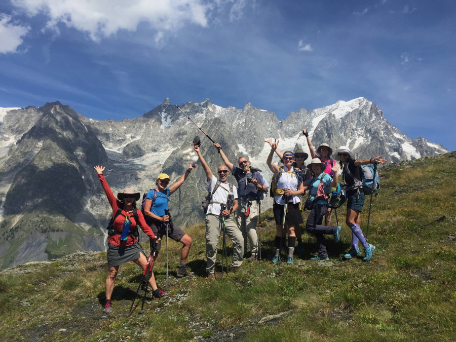 This trek was a scenic wonder! Each day, the route took us close to rugged peaks and glaciers, through alpine meadows, over high passes, and into picturesque valleys. Our last two days of hiking were particularly memorable, with perfectly clear skies and amazing views of Mont Blanc at every turn. Everyone on the team felt a true sense of accomplishment as we completed our journey.