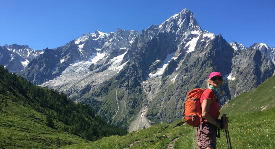 Leaving Courmayeur we pass ancient chalets until we reach a steep but steady forest trail which takes us to the stunningly positioned Rifugio Bertone. Today is without doubt a wonderful high level alpine walk, through flower meadows, amongst wildlife, passing herds of cows, and sheep, and with a lovely summit for our lunch spot. Once we gain our goal, the Monte de la Saxe ridge, we are rewarded with first-class views of many famous peaks of the Mont Blanc massif; the Grandes Jorasses, Dent du Geant, and Mont Dolent where Italy, France and Switzerland all meet on the summit! After lunch our trail leads us down from the Tête de la Tronche to the Col Sapin where we make our way down to the Armina valley, rich in flower meadows and local livestock. We hike down this beautiful valley to the famous Rifugio Bonatti where we can enjoy afternoon tea and cake with stunning views Mont Blanc. The Rifugio is dedicated to Walter Bonatti, one of our most famous alpine climbers and photographers. A descent from the hut brings us to the road head where we take the local bus back to Courmayeur for a second night.