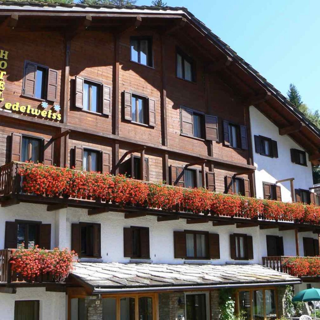 The Hotel Edelweiss is right in the heart of Courmayeur with easy access to the town centre, while being tucked away in a quiet street where you will not be disturbed by the crowds. The hotel has a lovely sunny garden area at the front, and a spacious lounge bar to enjoy a drink. All the rooms are en suite and dinner is very Italian with local dishes and plenty of pasta. Other hotels which we use in Courmayeur include the Hotel Bouton d'Or, and the Hotel Walser.