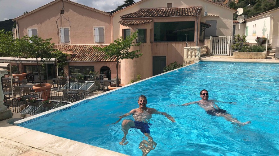 A former coach house, this lovely hotel is close to the Gréoux-les-Bains thermal spas and offers very comfortable bedrooms, a heated outdoor pool, and has an excellent restaurant with a terrace. The hotel has a rose garden, and outdoor seating so that you can enjoy relaxing at the end of your hike. The hotel also has a spa and can arrange massages to ease any tired muscles! Dinner is really excellent with food prepared from local produce.